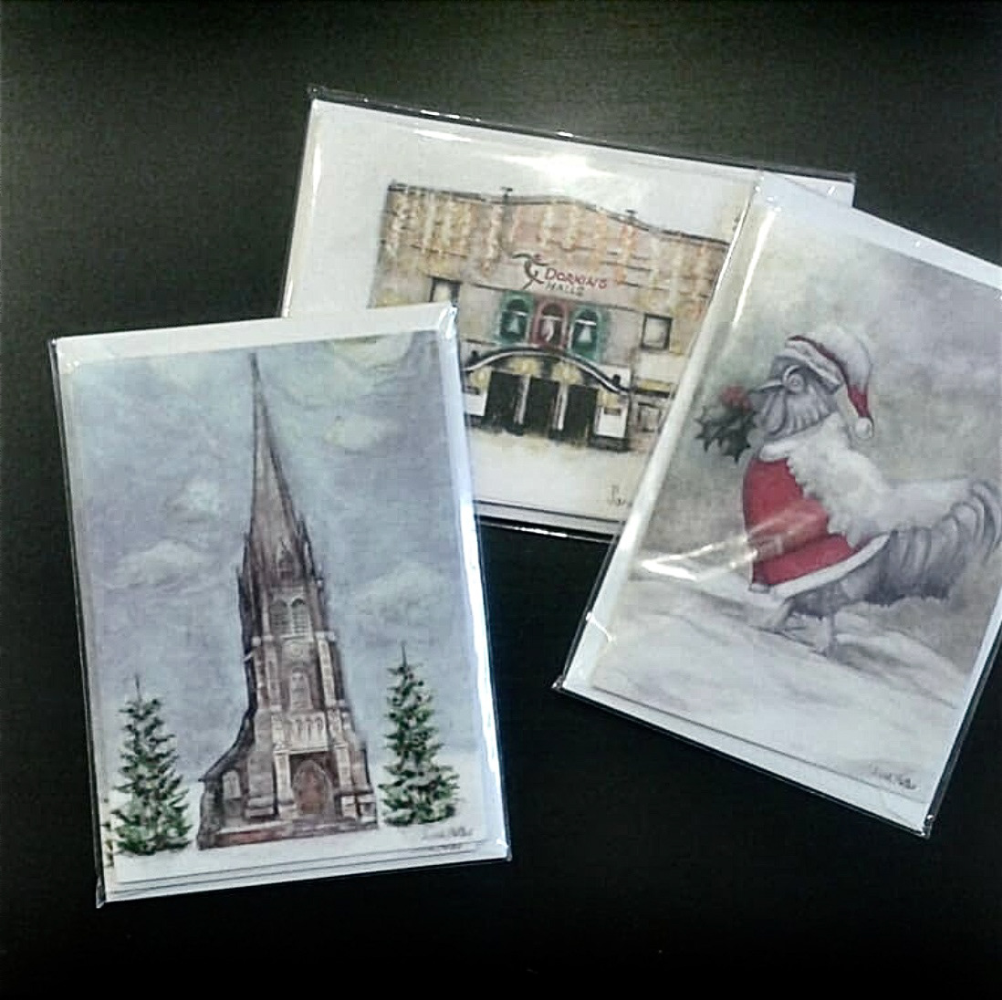 Hand-painted designs for Christmas cards. Commission by the Dorking Museum